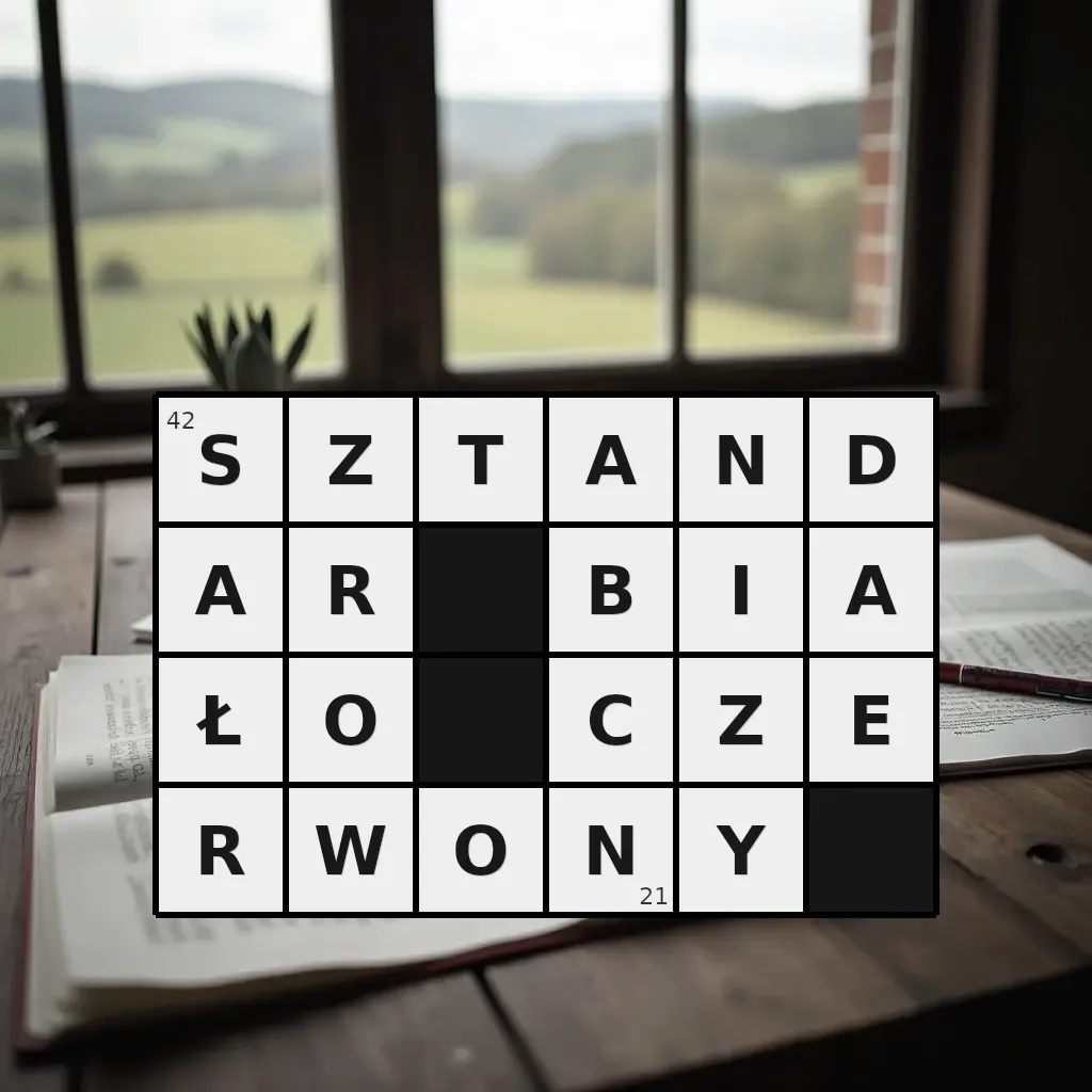 Słowo „sztandar biało-czerwony” ma 21 znak (bez spacji i łączników).