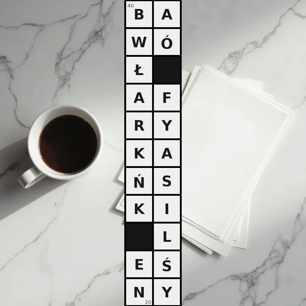 Słowo „bawół afrykański leśny” ma 20 znaków (bez spacji i łączników).