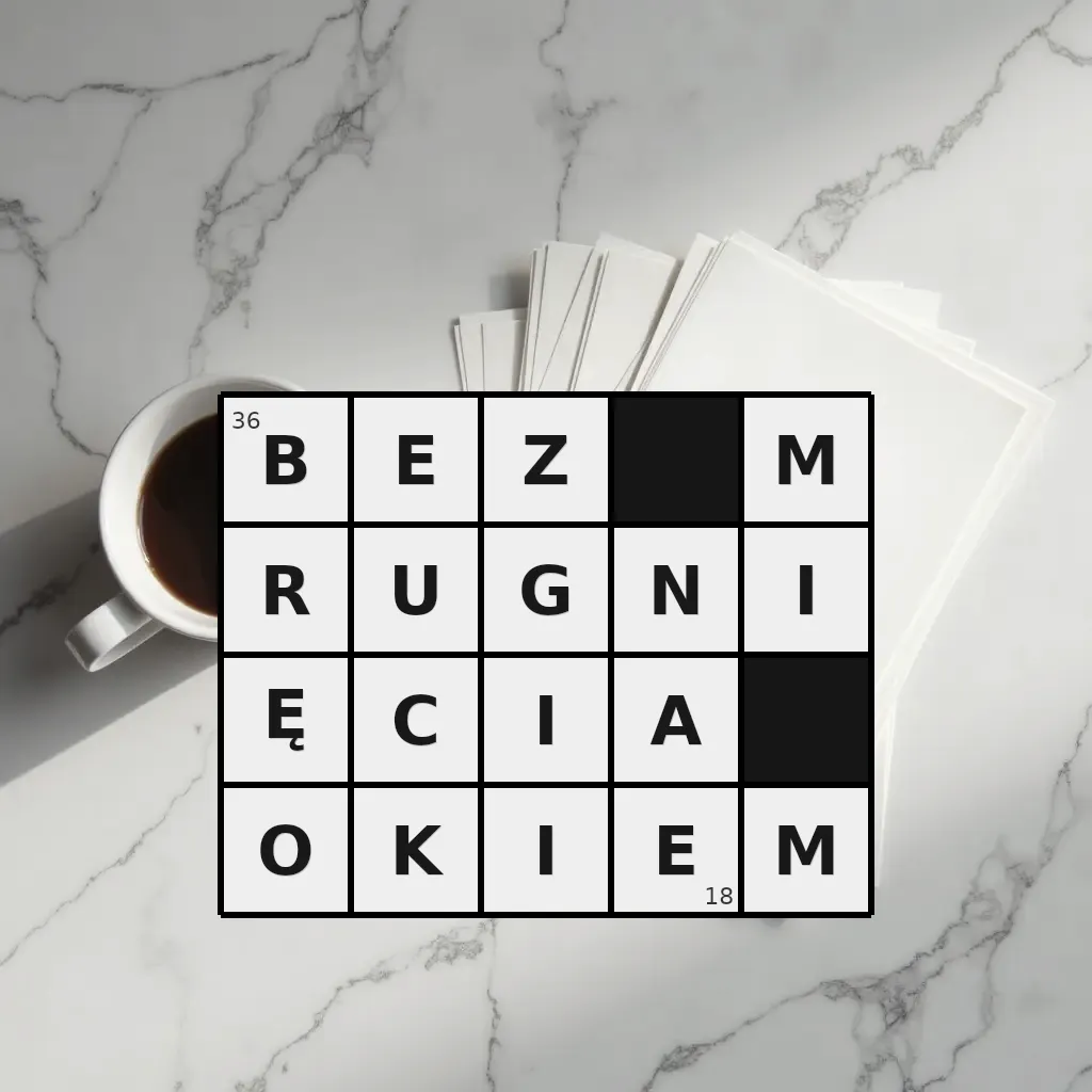 Słowo „bez mrugnięcia okiem” ma 18 znaków (bez spacji i łączników).