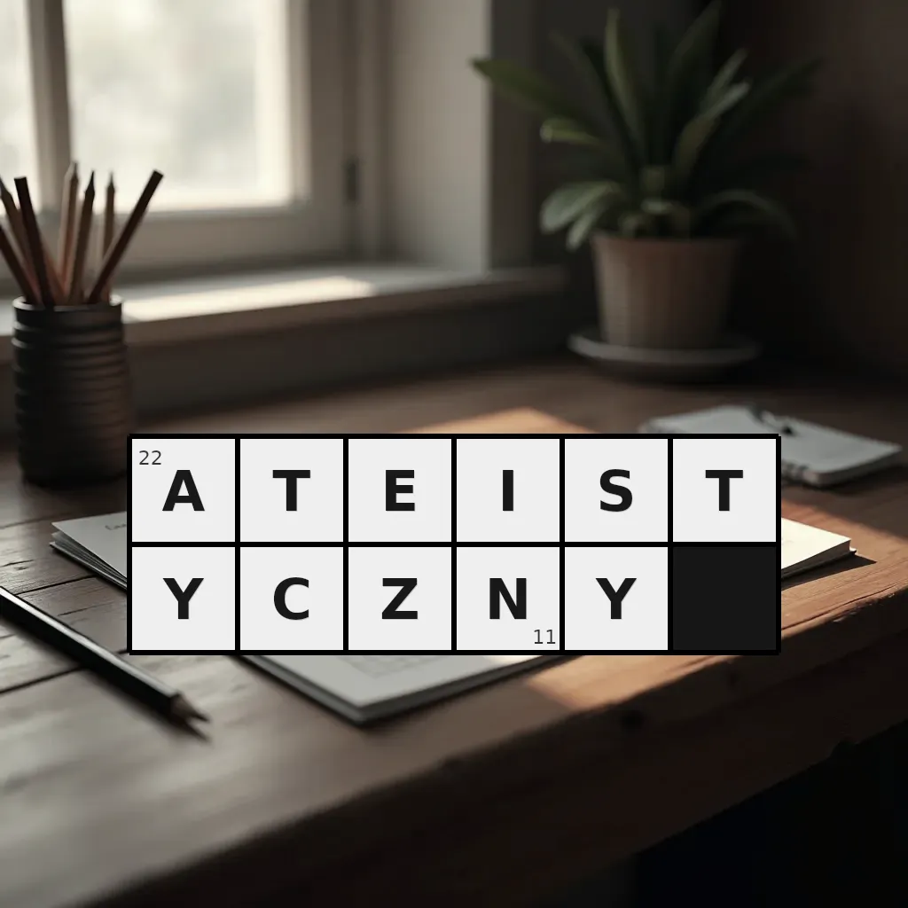 Słowo „ateistyczny” ma 11 znaków (bez spacji i łączników).