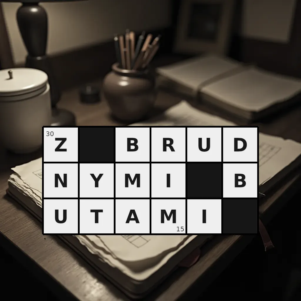 Zawiera litery: A, B, B, D, I, I, M, M, N, R, T, U, U, Y, Z