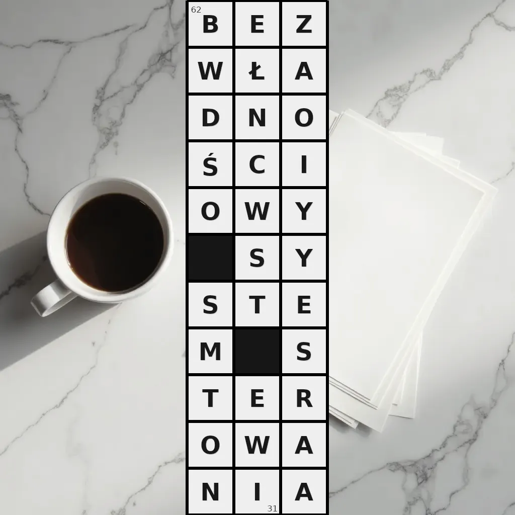 Słowo „bezwładnościowy system sterowania” ma 31 znak (bez spacji i łączników).