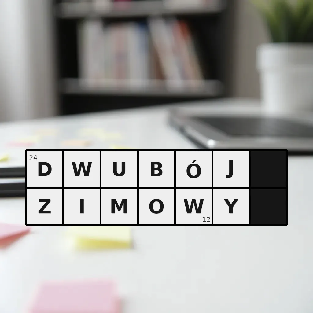 Słowo „dwubój zimowy” ma 12 znaków (bez spacji i łączników).