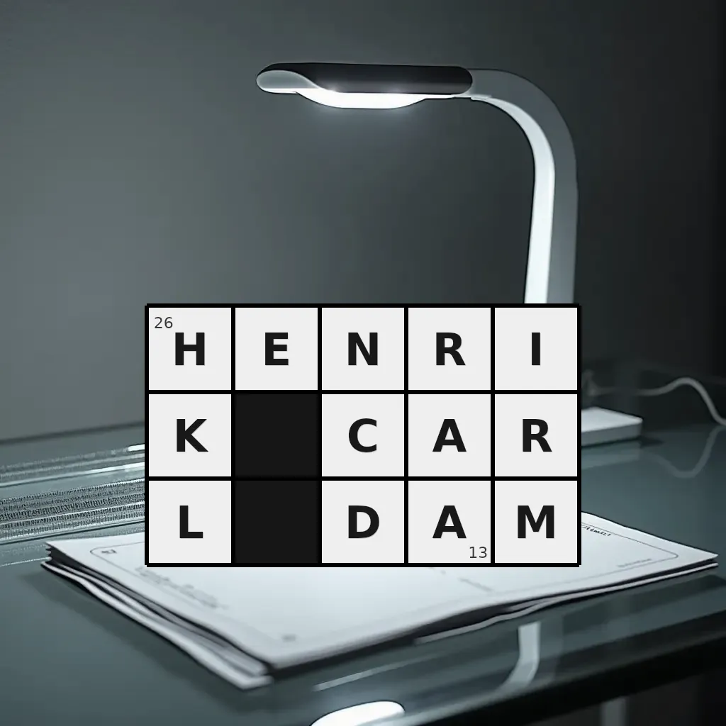 Słowo „henrik carl dam” ma 13 znaków (bez spacji i łączników).