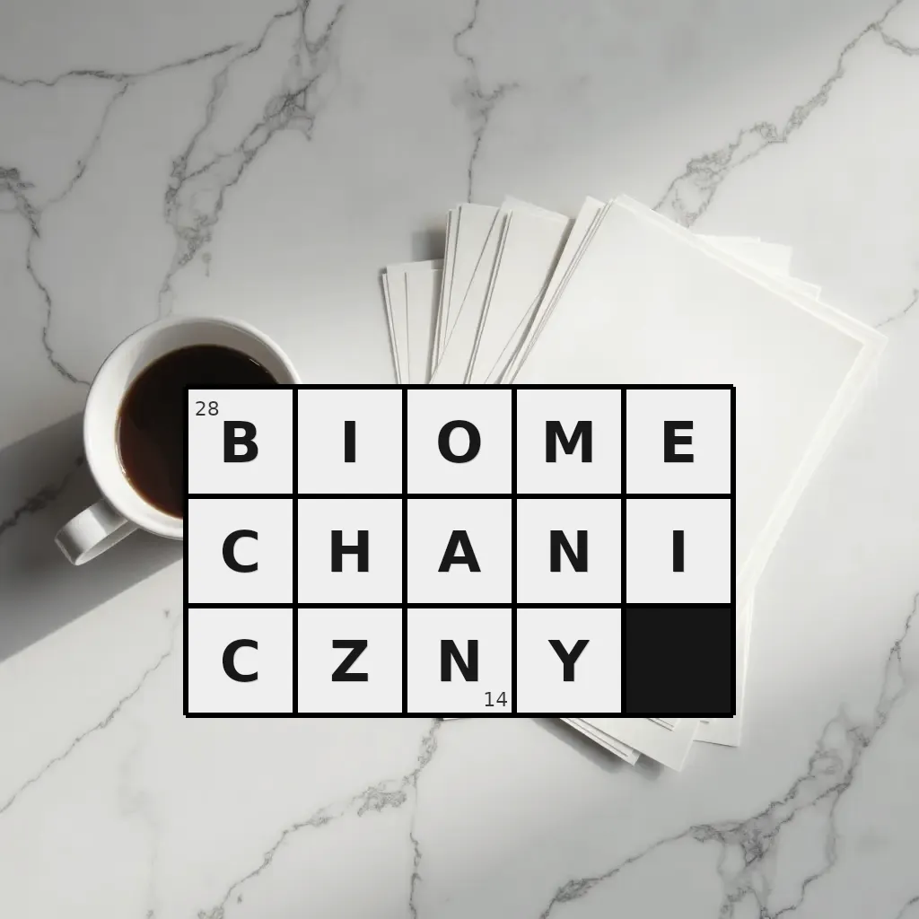 Słowo „biomechaniczny” ma 14 znaków (bez spacji i łączników).