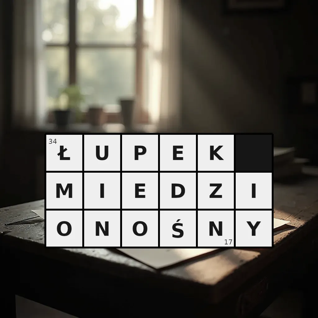 Słowo „łupek miedzionośny” ma 17 znaków (bez spacji i łączników).