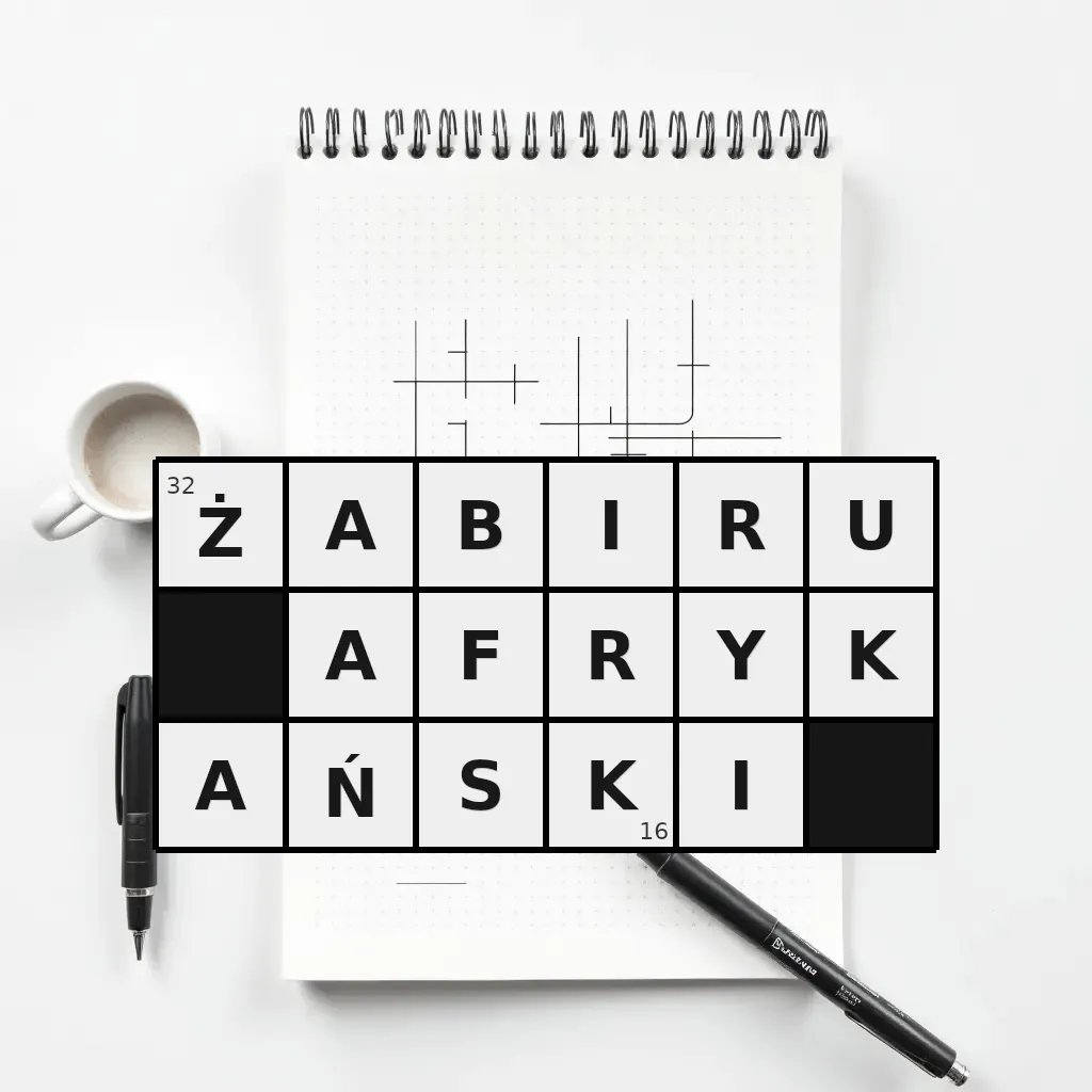 Słowo „żabiru afrykański” ma 16 znaków (bez spacji i łączników).