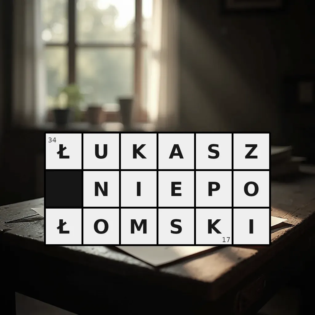 Słowo „łukasz niepołomski” ma 17 znaków (bez spacji i łączników).