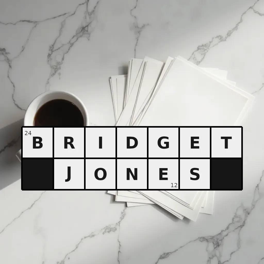 Słowo „bridget jones” ma 12 znaków (bez spacji i łączników).