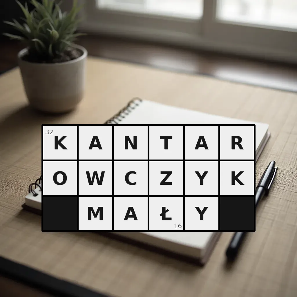 Słowo „kantarowczyk mały” ma 16 znaków (bez spacji i łączników).