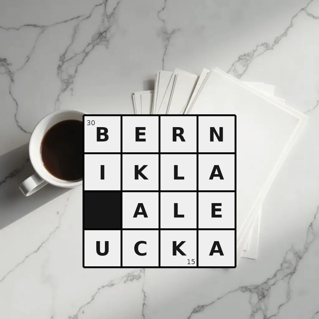 Słowo „bernikla aleucka” ma 15 znaków (bez spacji i łączników).