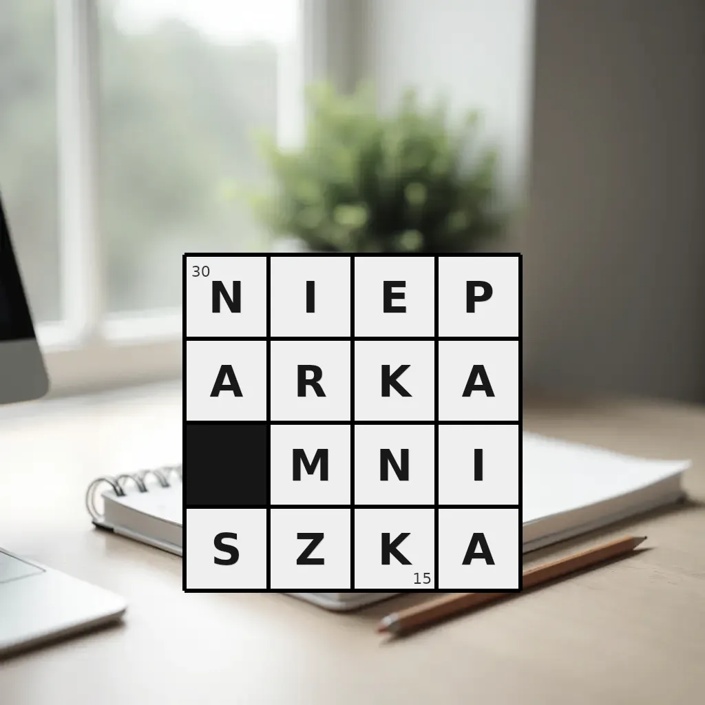Słowo „nieparka mniszka” ma 15 znaków (bez spacji i łączników).