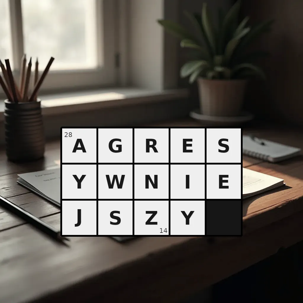 Zawiera litery: A, E, E, G, I, J, N, R, S, S, W, Y, Y, Z