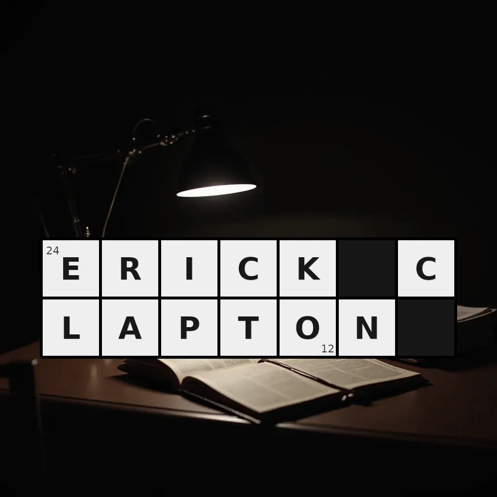 Słowo „erick clapton” ma 12 znaków (bez spacji i łączników).