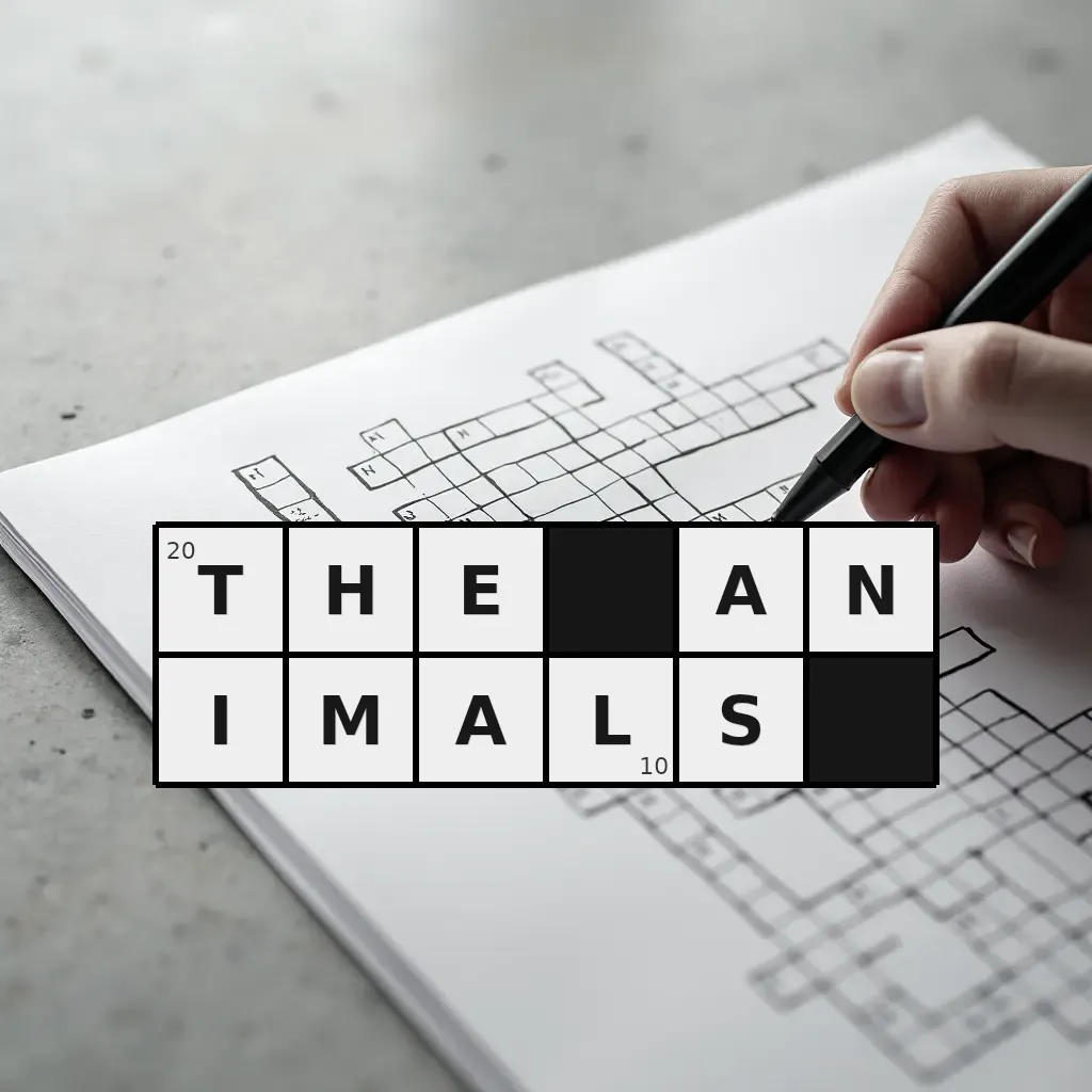 Słowo „the animals” ma 10 znaków (bez spacji i łączników).