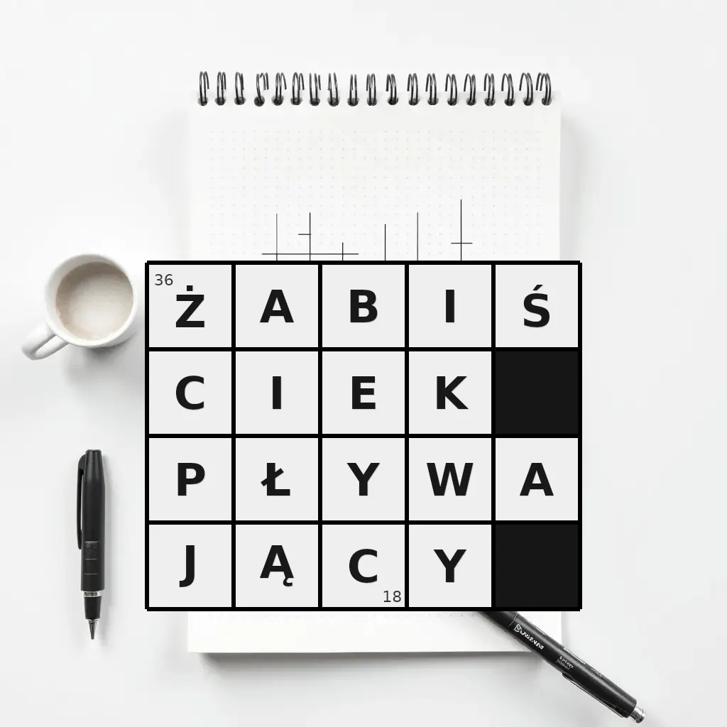 Słowo „żabiściek pływający” ma 18 znaków (bez spacji i łączników).