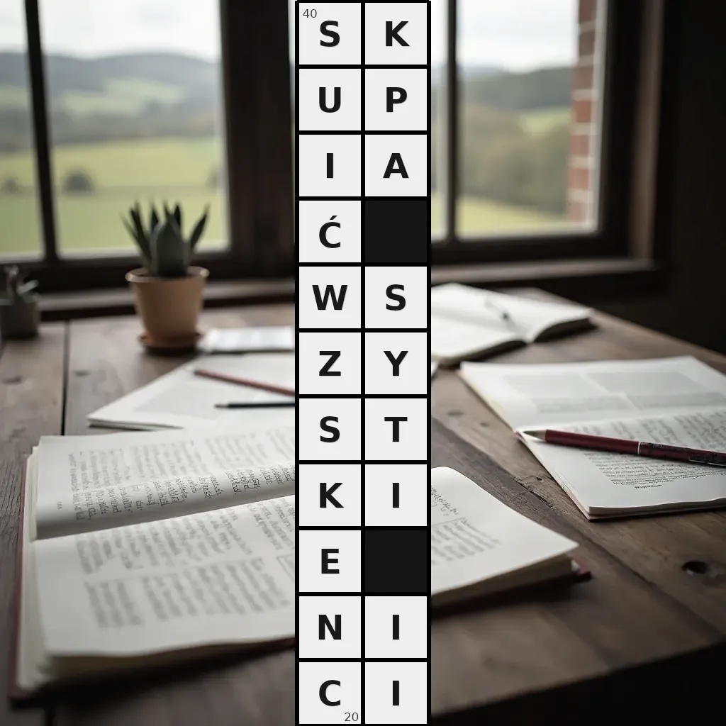 Słowo „skupiać wszystkie nici” ma 20 znaków (bez spacji i łączników).