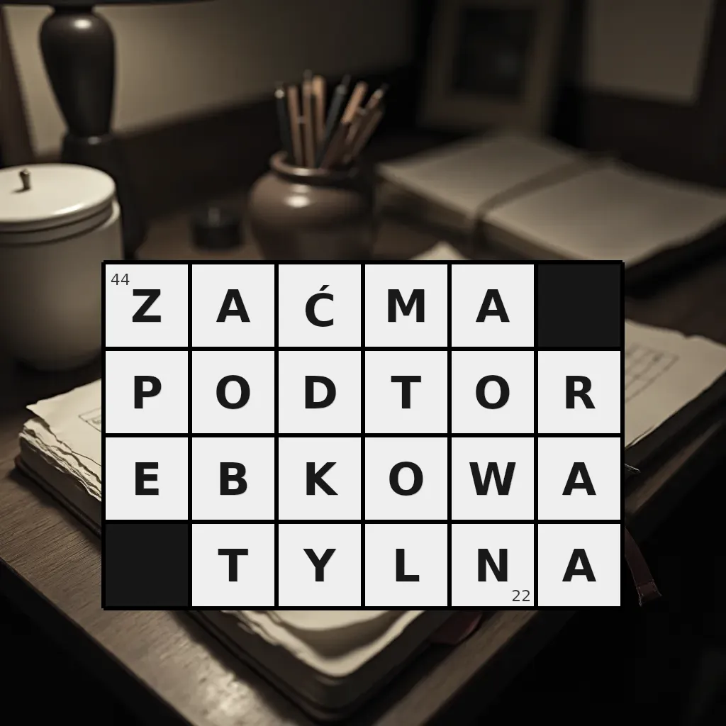 Słowo „zaćma podtorebkowa tylna” ma 22 znaki (bez spacji i łączników).
