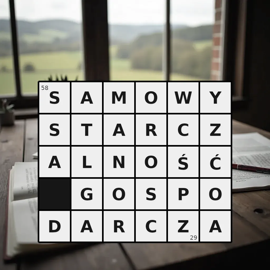 Słowo „samowystarczalność gospodarcza” ma 29 znaków (bez spacji i łączników).