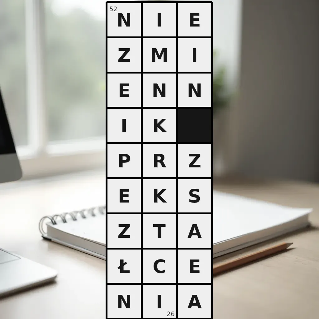 Słowo „niezmiennik przekształcenia” ma 26 znaków (bez spacji i łączników).