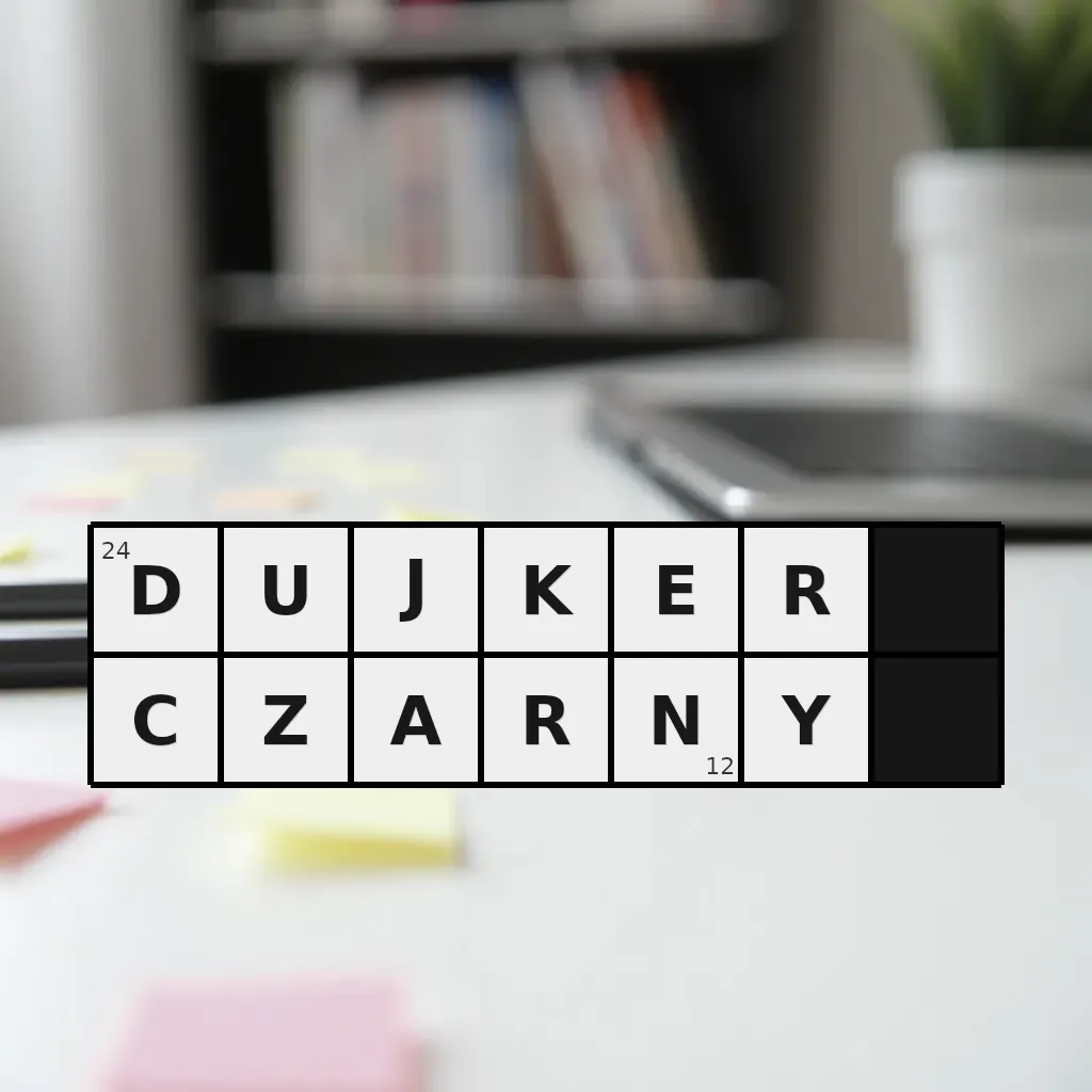 Słowo „dujker czarny” ma 12 znaków (bez spacji i łączników).