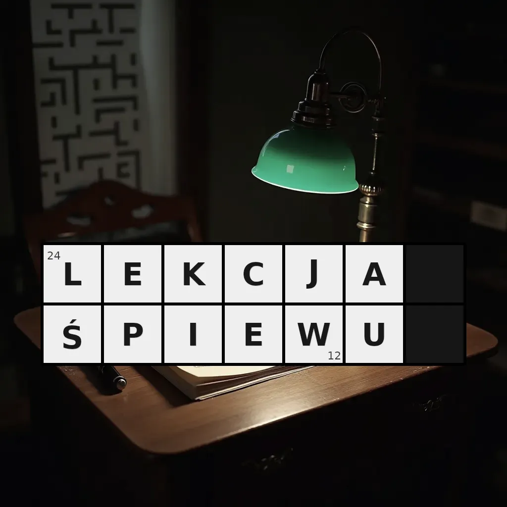Słowo „lekcja śpiewu” ma 12 znaków (bez spacji i łączników).