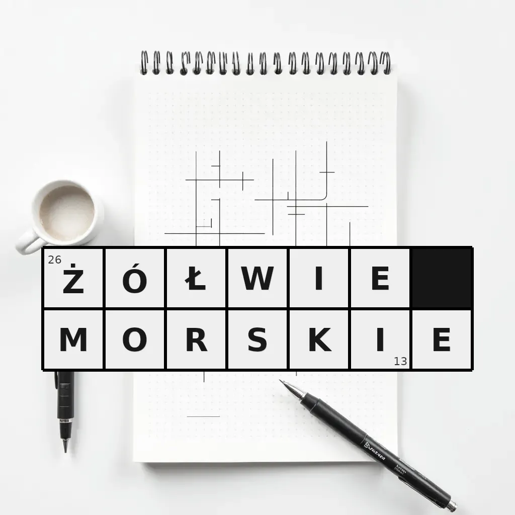 Słowo „żółwie morskie” ma 13 znaków (bez spacji i łączników).