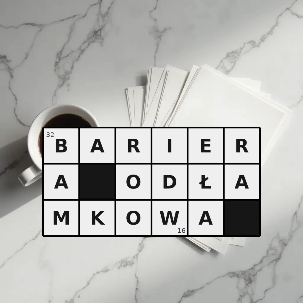 Słowo „bariera odłamkowa” ma 16 znaków (bez spacji i łączników).