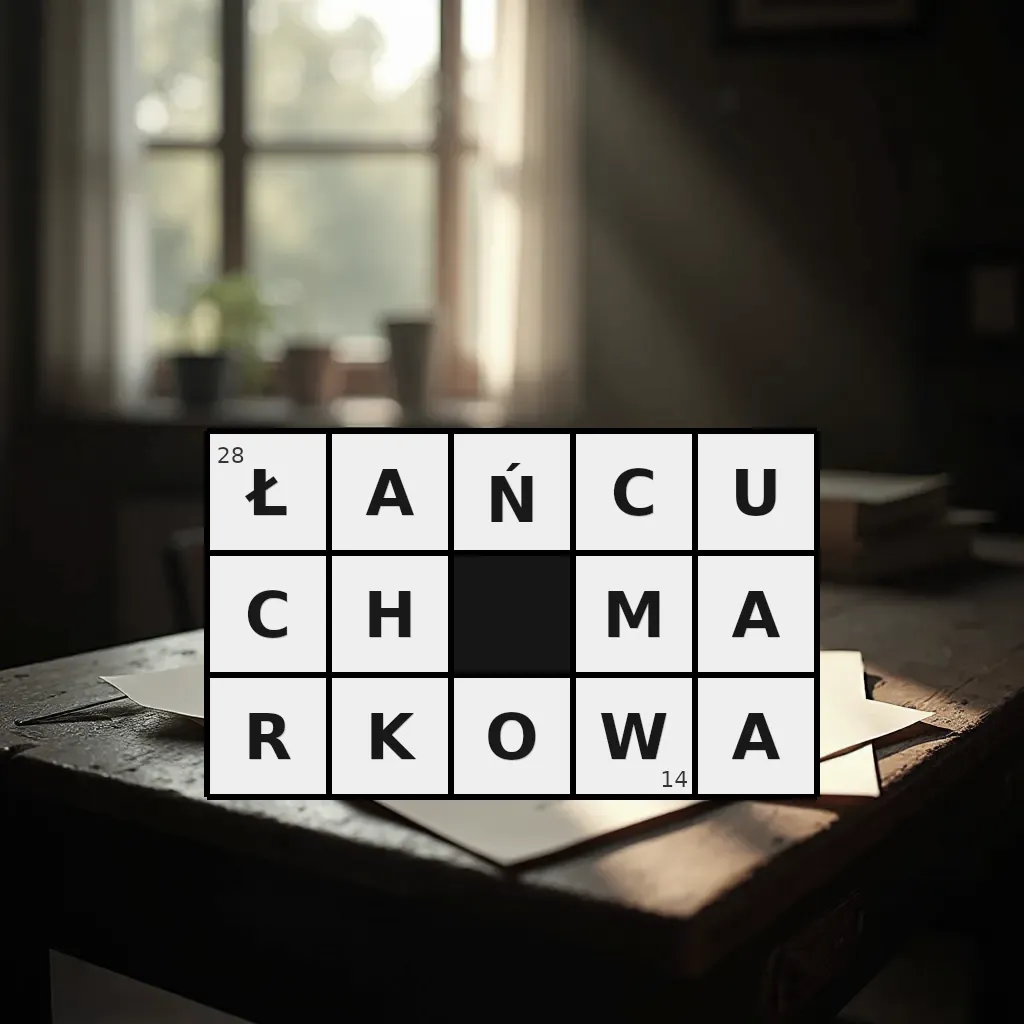 Słowo „łańcuch markowa” ma 14 znaków (bez spacji i łączników).