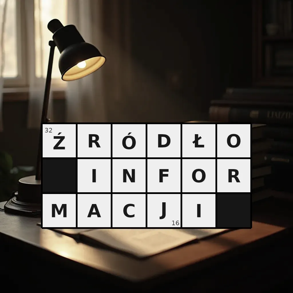 Słowo „źródło informacji” ma 16 znaków (bez spacji i łączników).