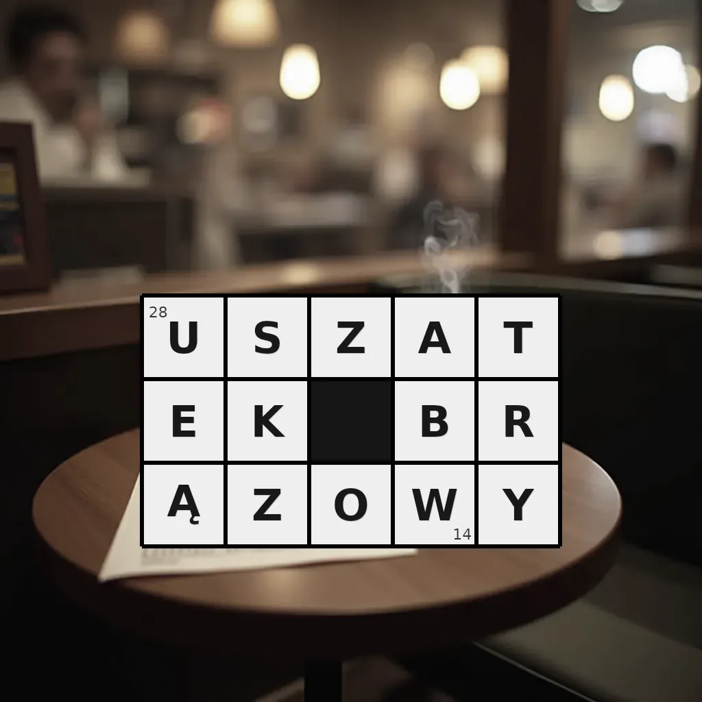Słowo „uszatek brązowy” ma 14 znaków (bez spacji i łączników).
