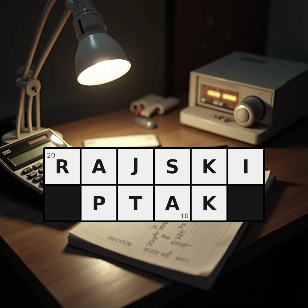 Zawiera litery: A, A, I, J, K, K, P, R, S, T