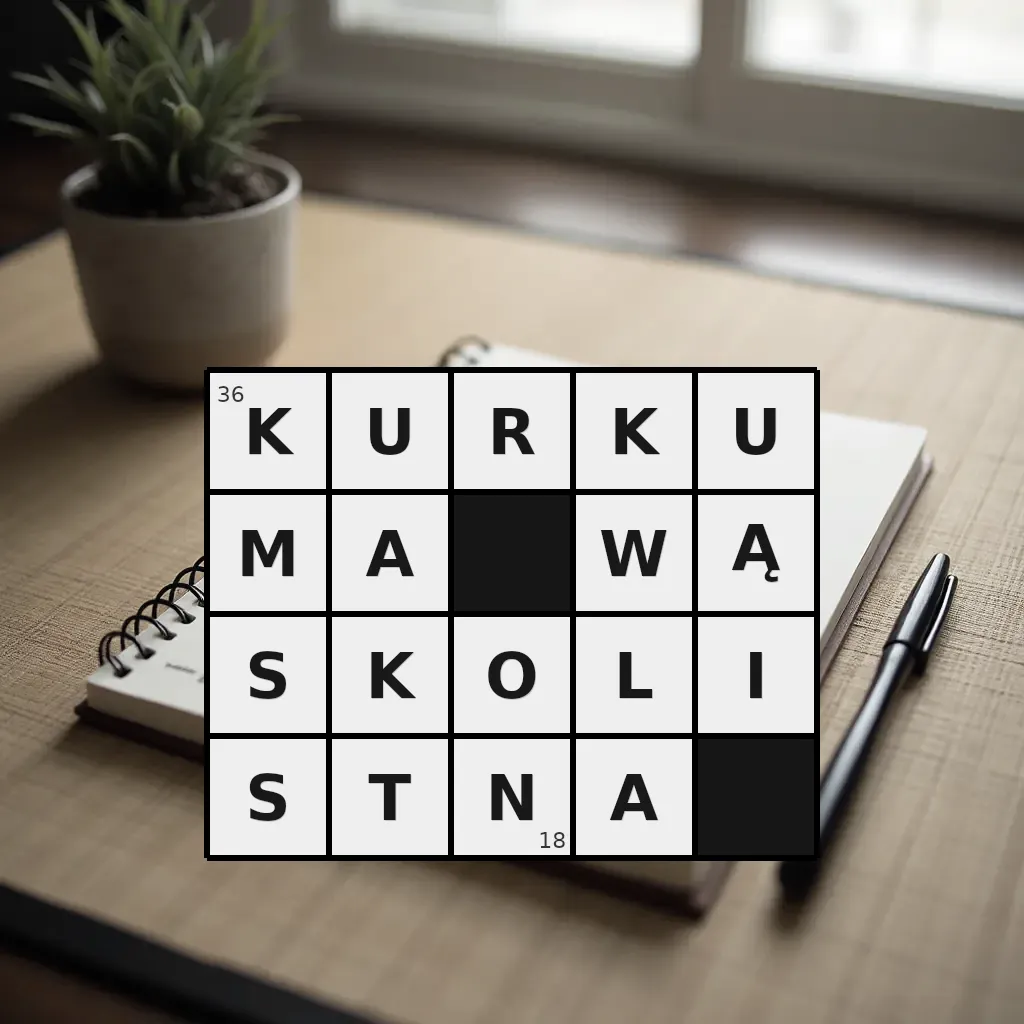 Słowo „kurkuma wąskolistna” ma 18 znaków (bez spacji i łączników).