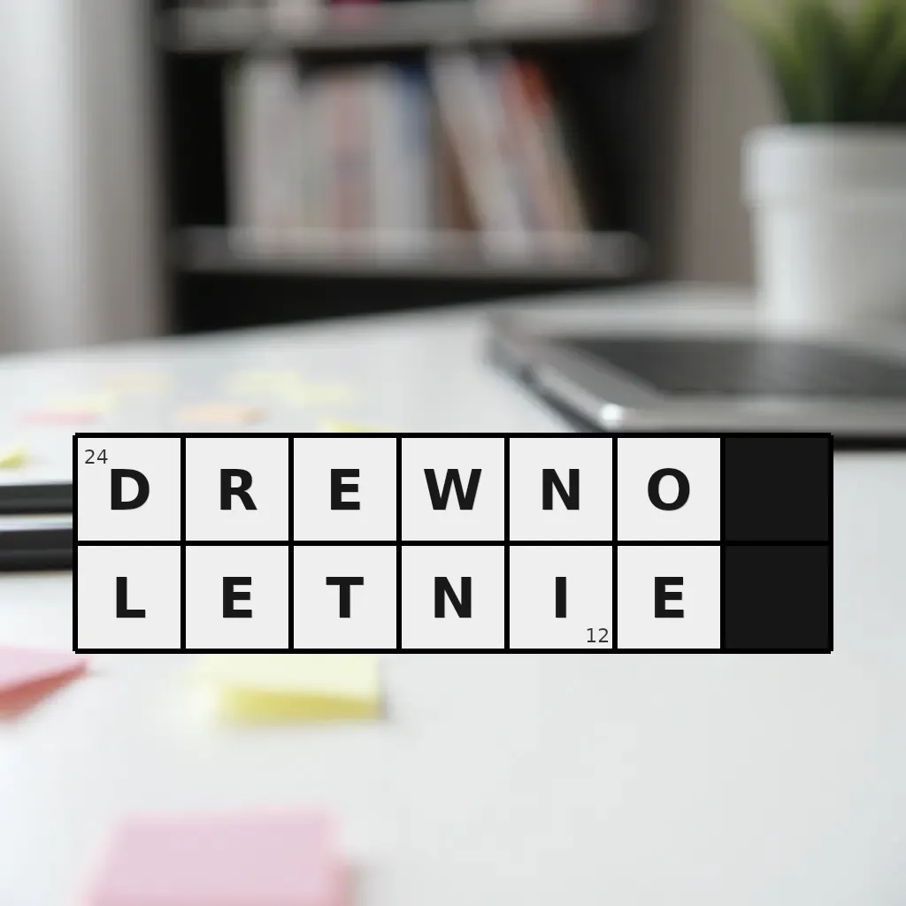 Słowo „drewno letnie” ma 12 znaków (bez spacji i łączników).
