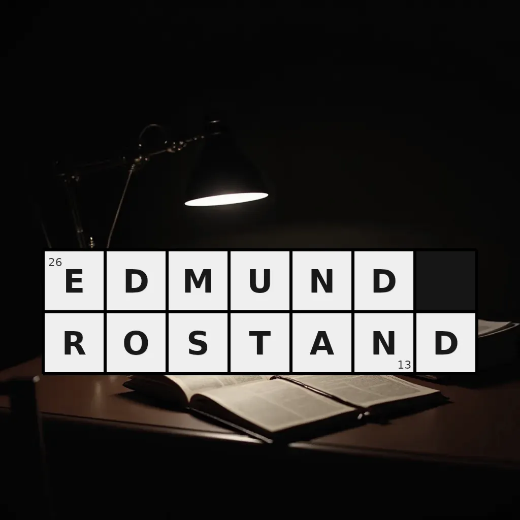 Słowo „edmund rostand” ma 13 znaków (bez spacji i łączników).