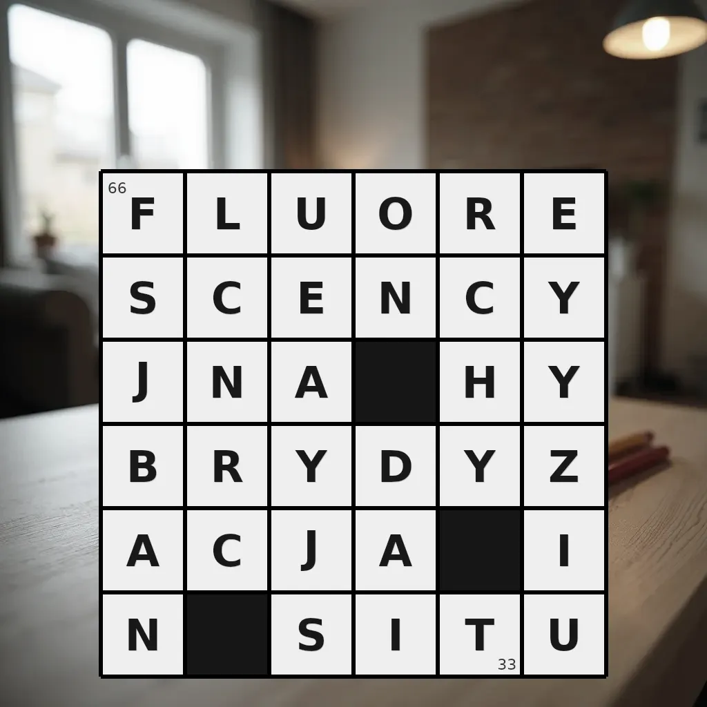 Słowo „fluorescencyjna hybrydyzacja in situ” ma 33 znaki (bez spacji i łączników).