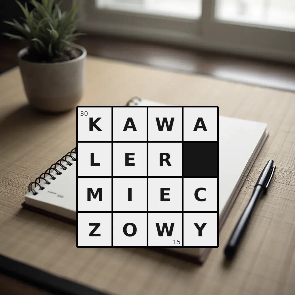 Słowo „kawaler mieczowy” ma 15 znaków (bez spacji i łączników).