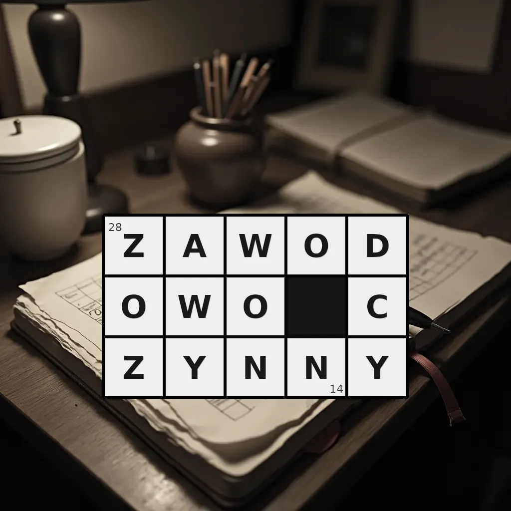 Zawiera litery: A, C, D, N, N, O, O, O, W, W, Y, Y, Z, Z