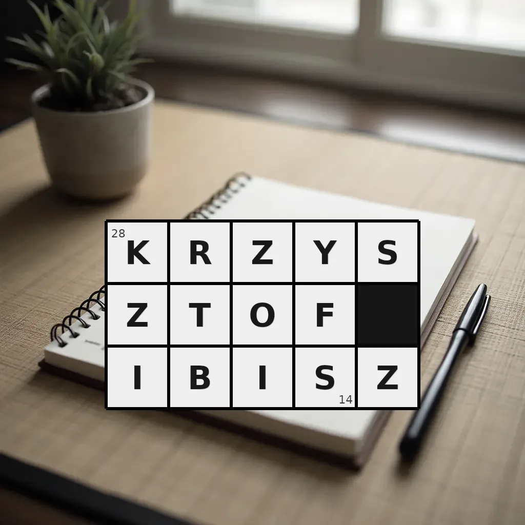 Słowo „krzysztof ibisz” ma 14 znaków (bez spacji i łączników).