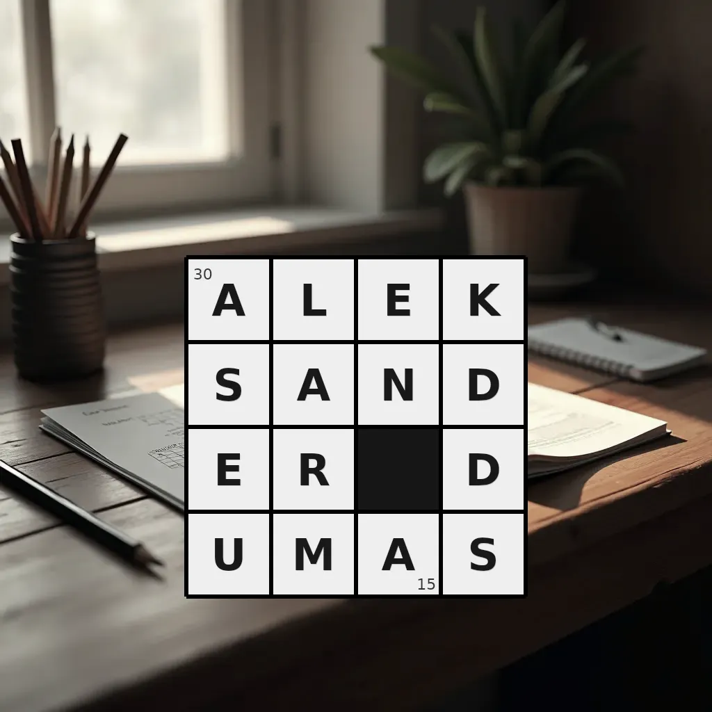 Słowo „aleksander dumas” ma 15 znaków (bez spacji i łączników).