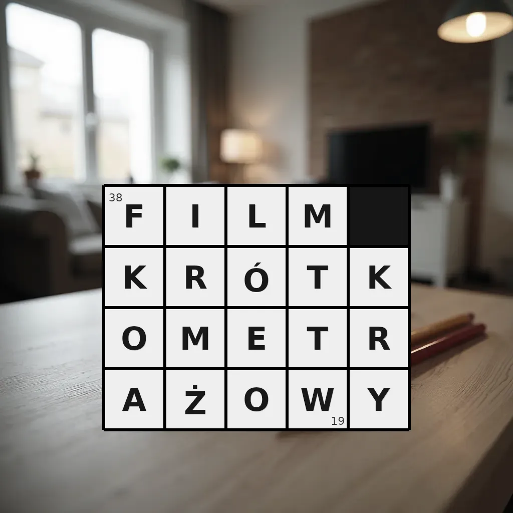 Słowo „film krótkometrażowy” ma 19 znaków (bez spacji i łączników).
