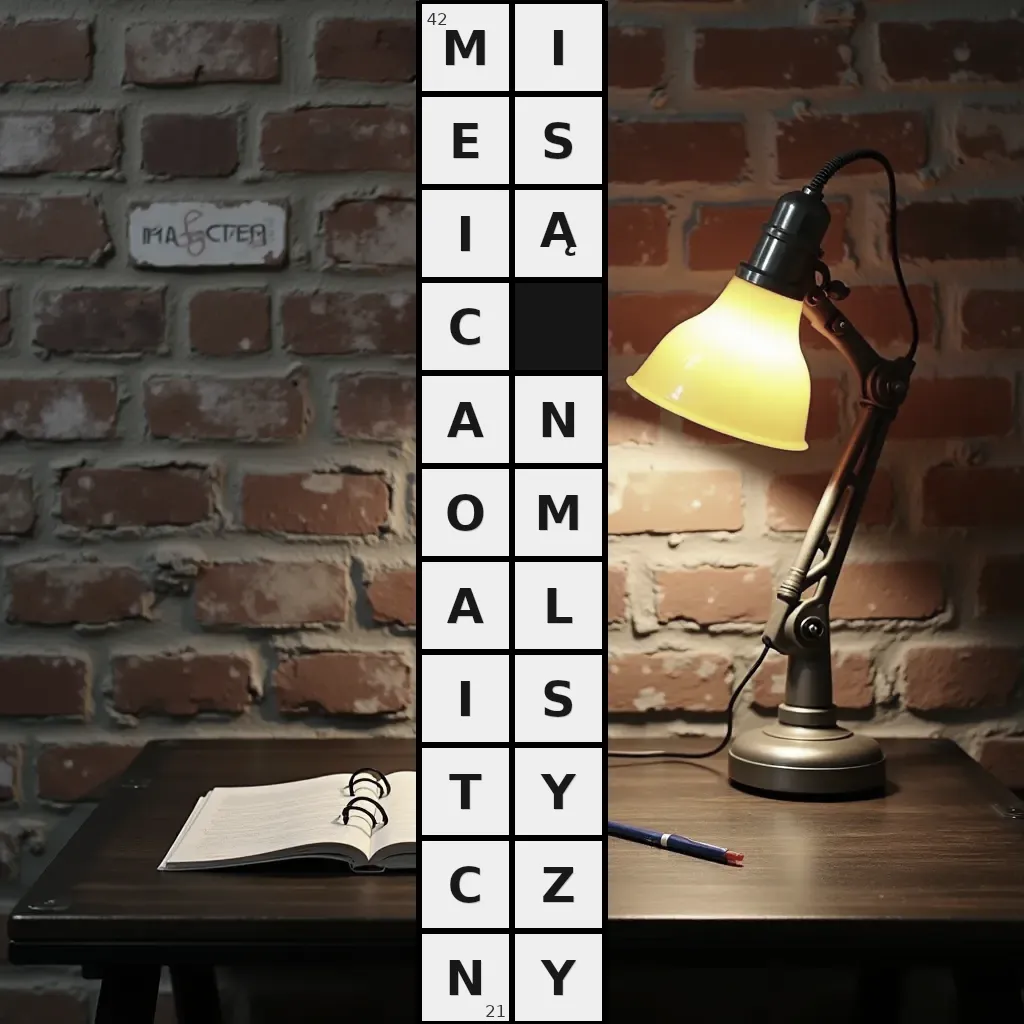 Zawiera litery: A, A, C, C, E, I, I, I, L, M, M, N, N, O, S, S, T, Y, Y, Z, Ą