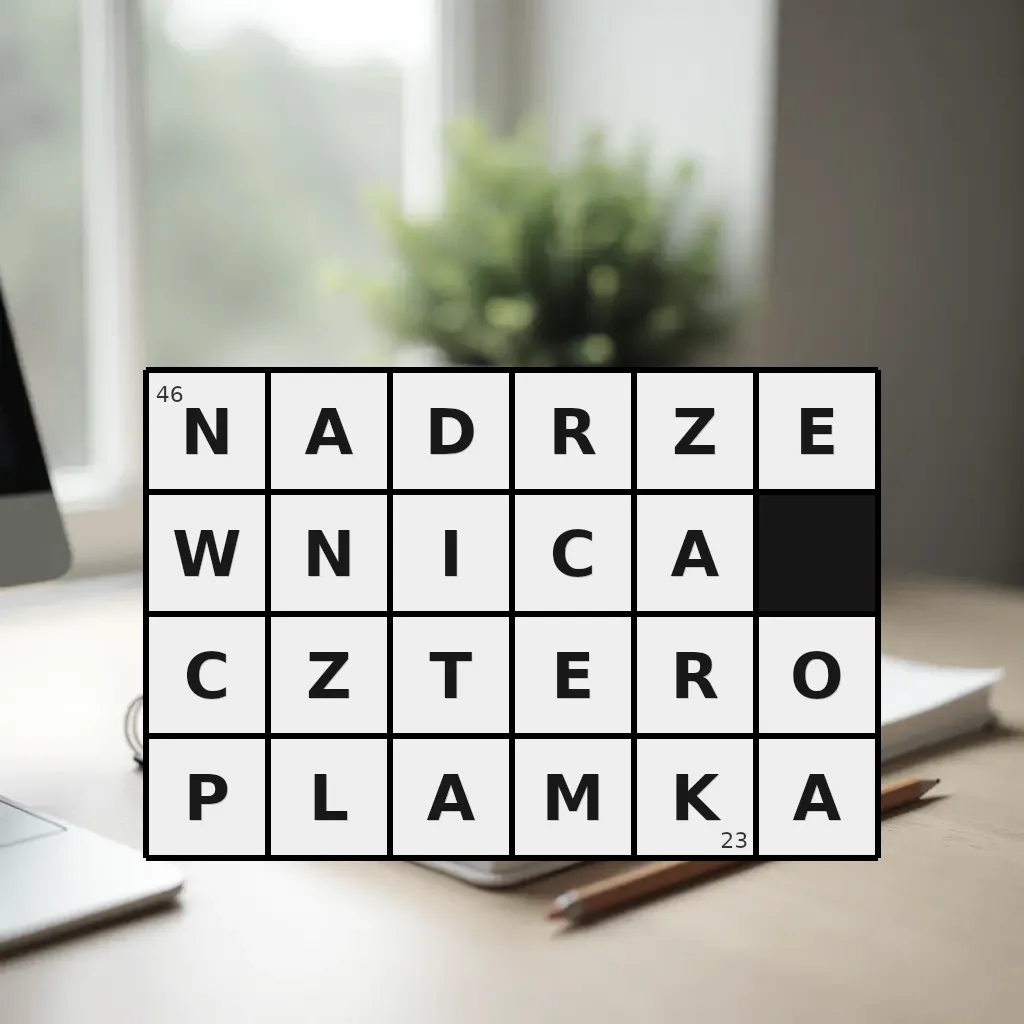 Słowo „nadrzewnica czteroplamka” ma 23 znaki (bez spacji i łączników).