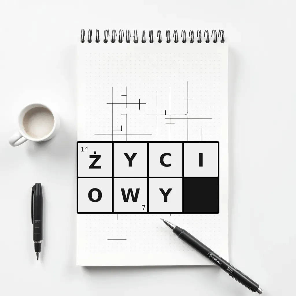Słowo „życiowy” ma 7 znaków (bez spacji i łączników).