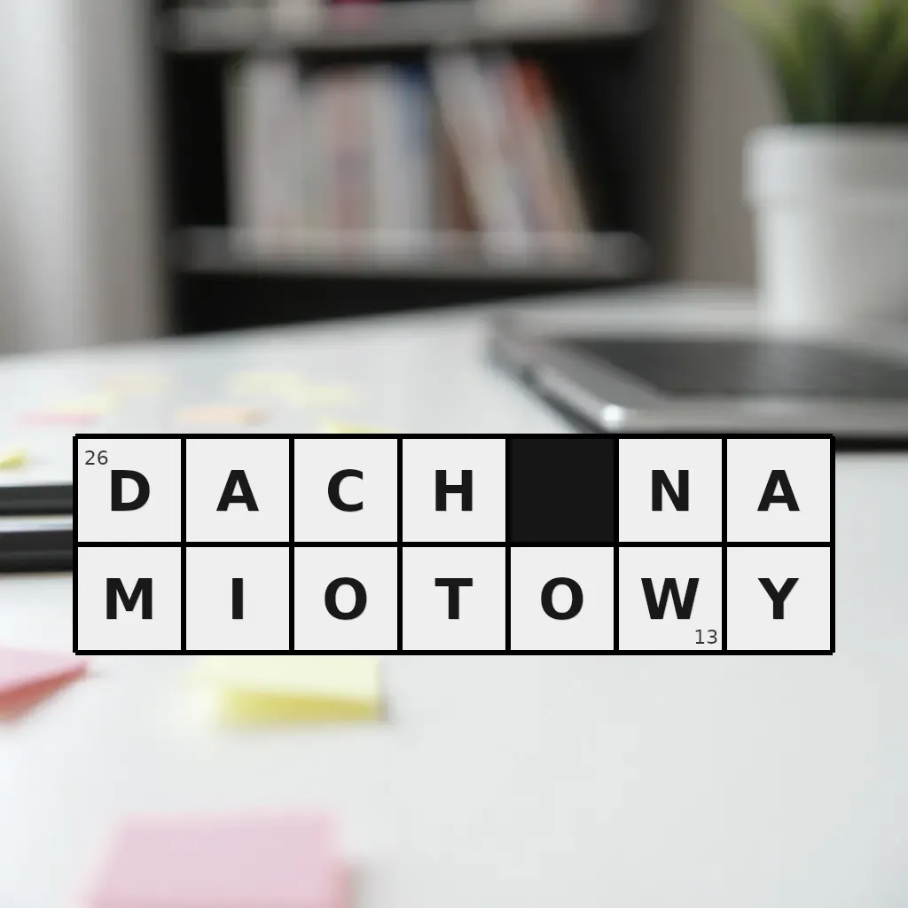 Słowo „dach namiotowy” ma 13 znaków (bez spacji i łączników).