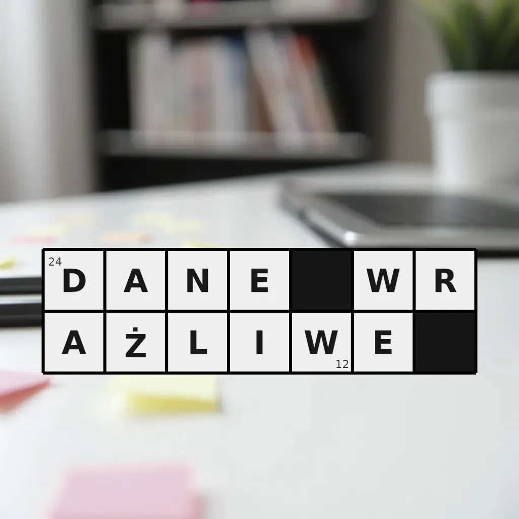 Słowo „dane wrażliwe” ma 12 znaków (bez spacji i łączników).