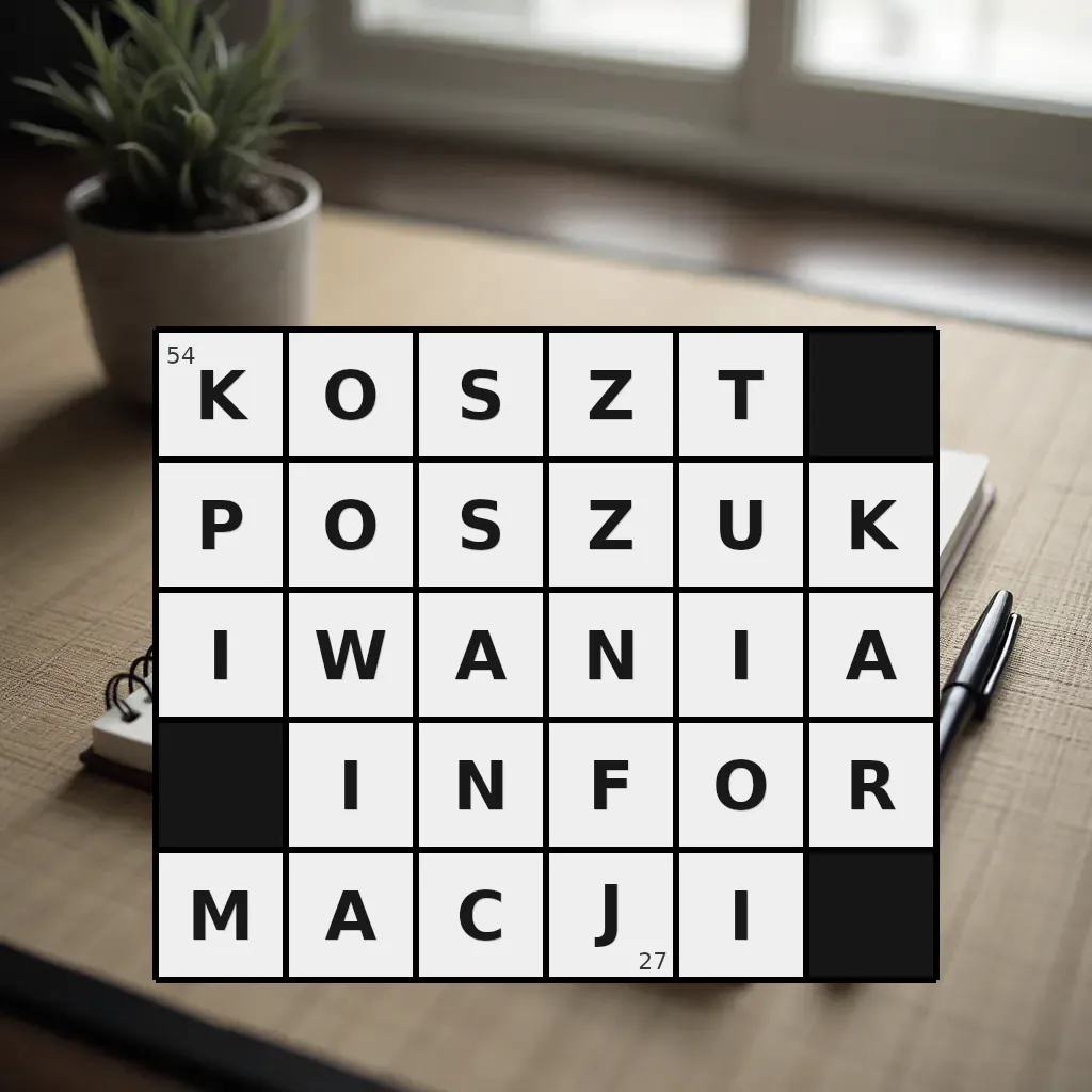 Słowo „koszt poszukiwania informacji” ma 27 znaków (bez spacji i łączników).
