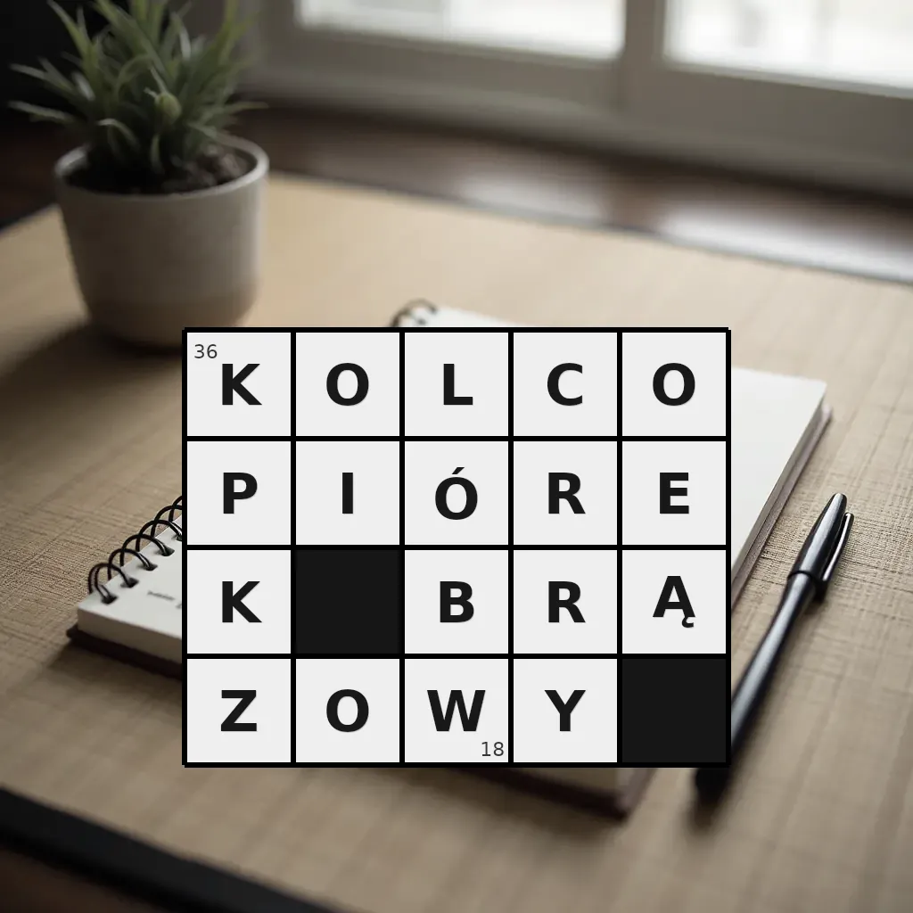 Słowo „kolcopiórek brązowy” ma 18 znaków (bez spacji i łączników).