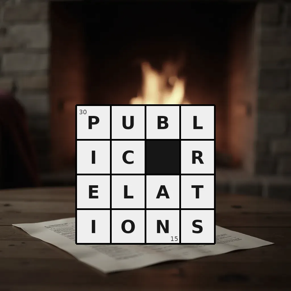 Słowo „public relations” ma 15 znaków (bez spacji i łączników).