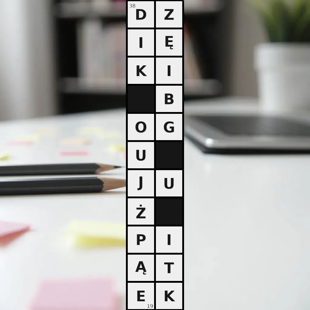 Zawiera litery: B, D, E, G, I, I, I, J, K, K, O, P, T, U, U, Z, Ą, Ę, Ż